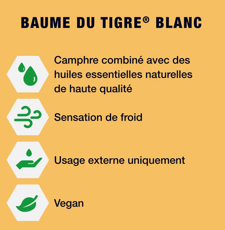 Le Baume du Tigre Blanc 10g est un baume de massage traditionnel aux huiles essentielles, reconnu mondialement depuis plus de 100 ans pour ses effets apaisants et relaxants.