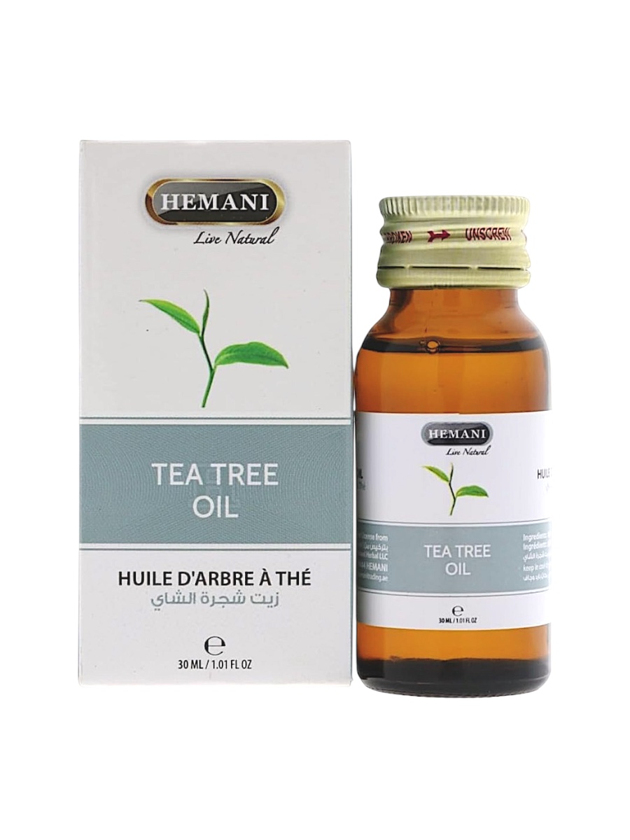 Adoptez l’huile essentielle de Tea Tree ( Arbre à thé ) Hemani – un soin naturel puissant et purifiant à toujours avoir sous la main pour une peau nette, un cuir chevelu sain et une hygiène irréprochable.